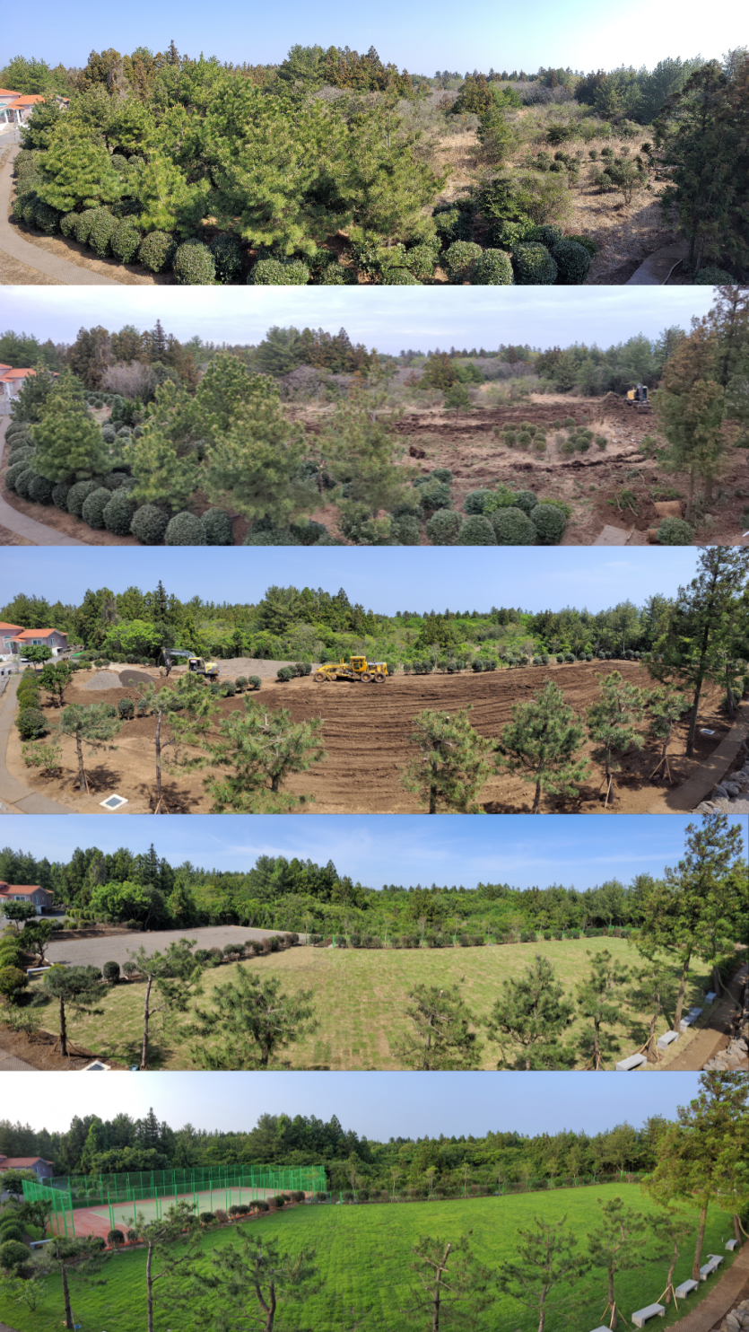 체육시설을 만들면서 진행 과정에 따라 똑같은 장소에서 사진을 찍어 보았다.
