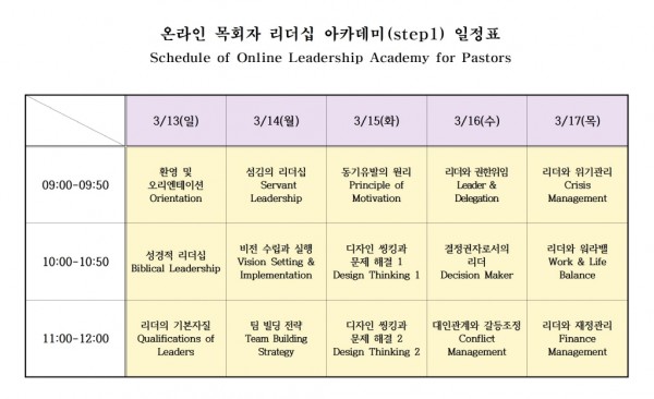 코로나 팬데믹으로 인한 언택트 시대에 대처하기 위해 처음으로 목회자 리더십 아카데미를 온라인으로 개최하였다.