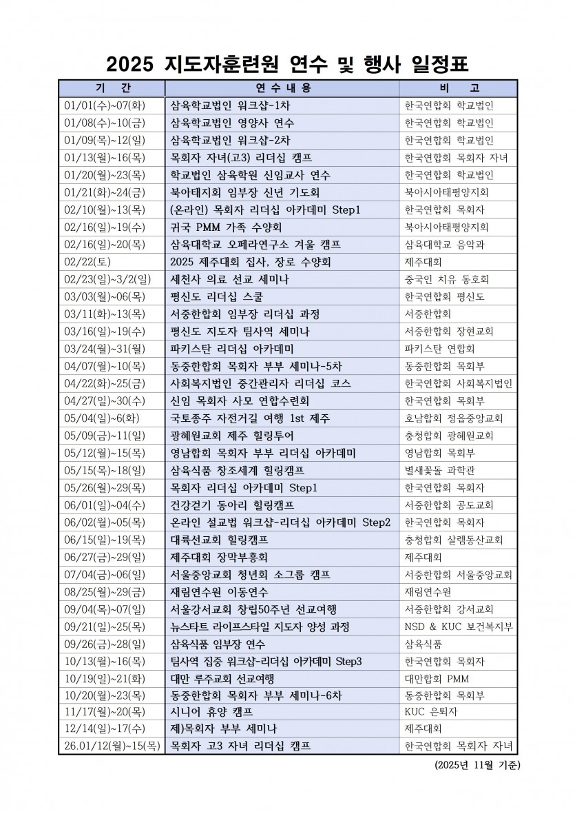 2025년도 연수 및 행사 일정표입니다.(2025. 6. 1. 현재)