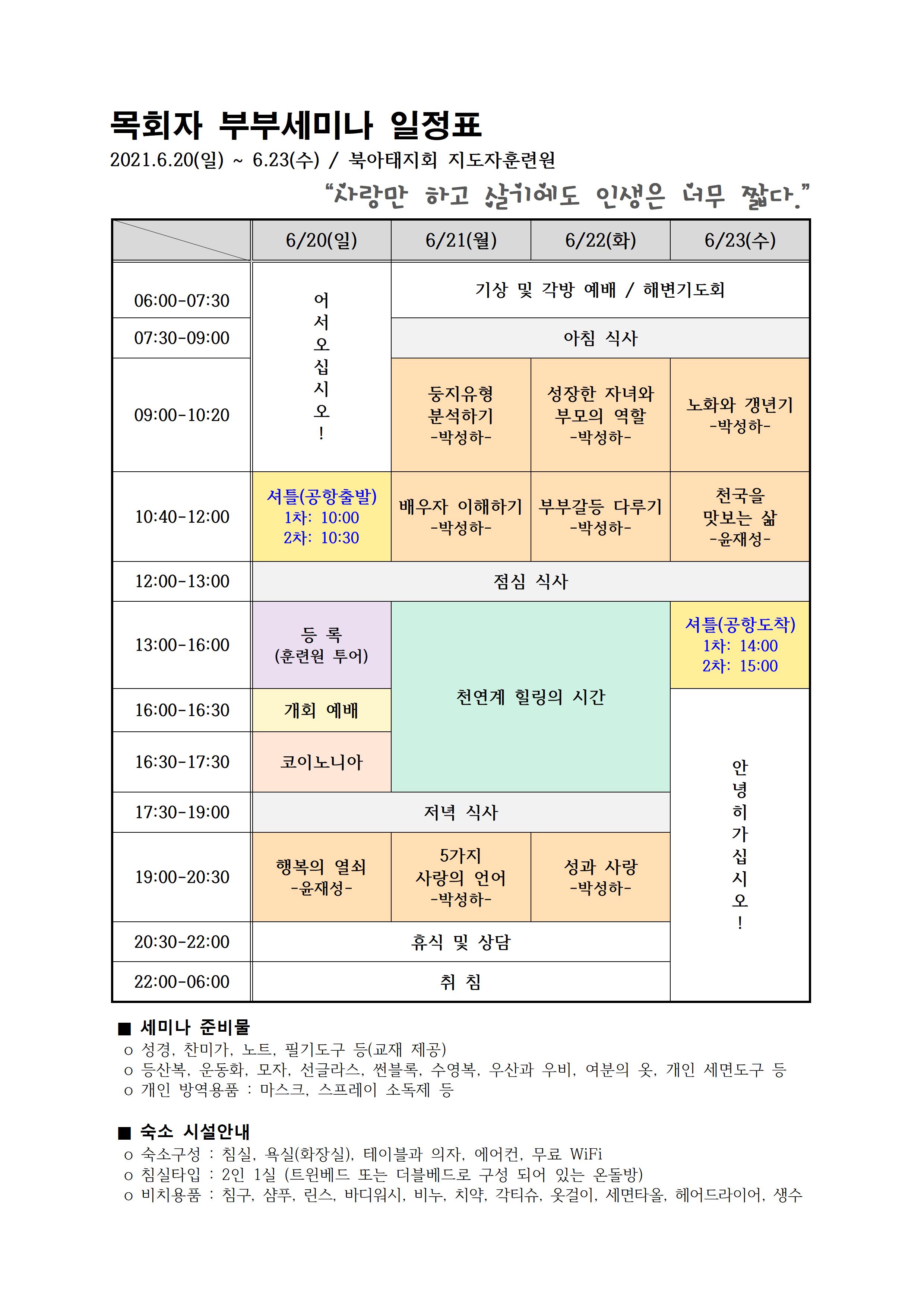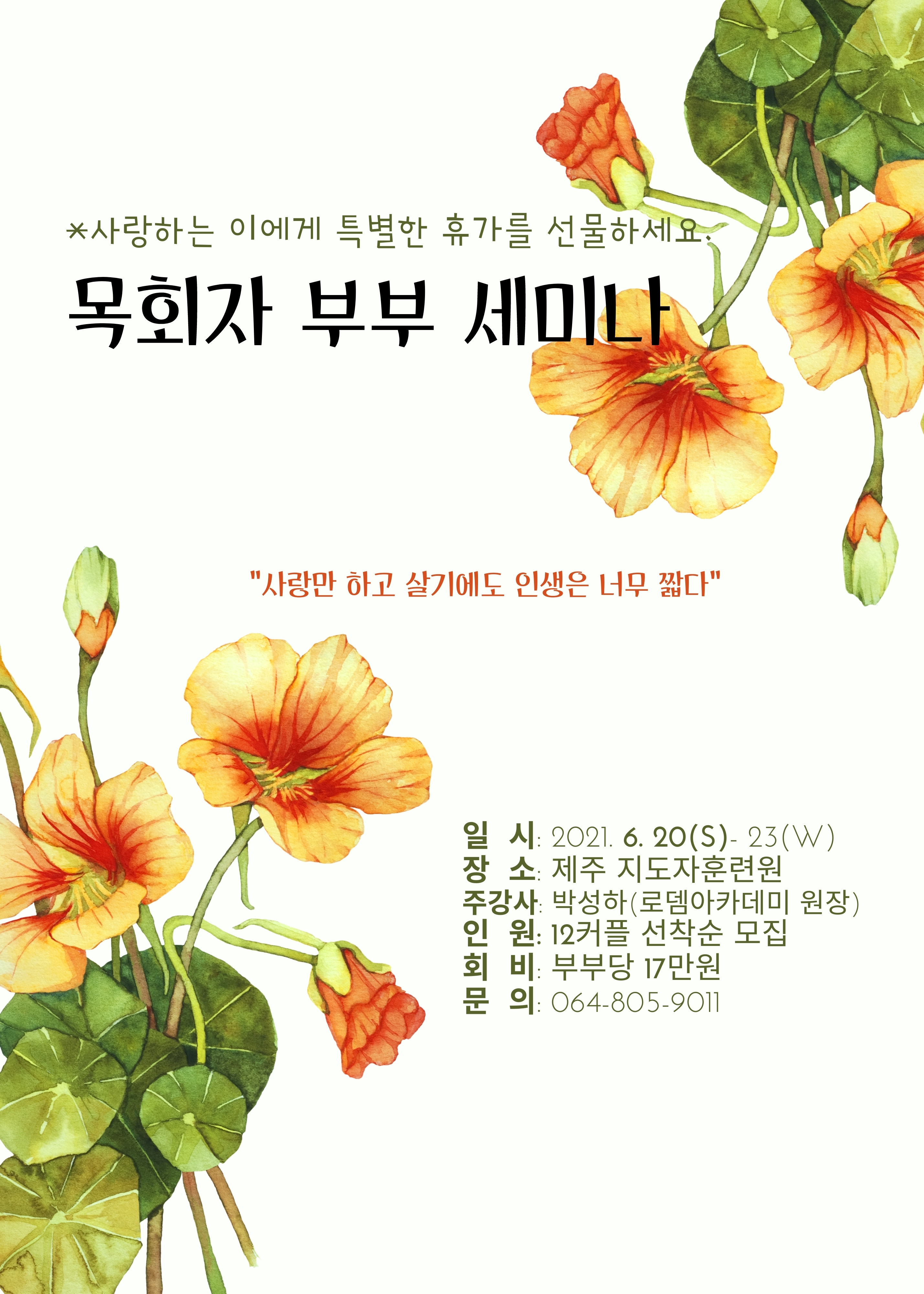 Marriage Seminar for Korean Pastors finally rescheduled as follow.
