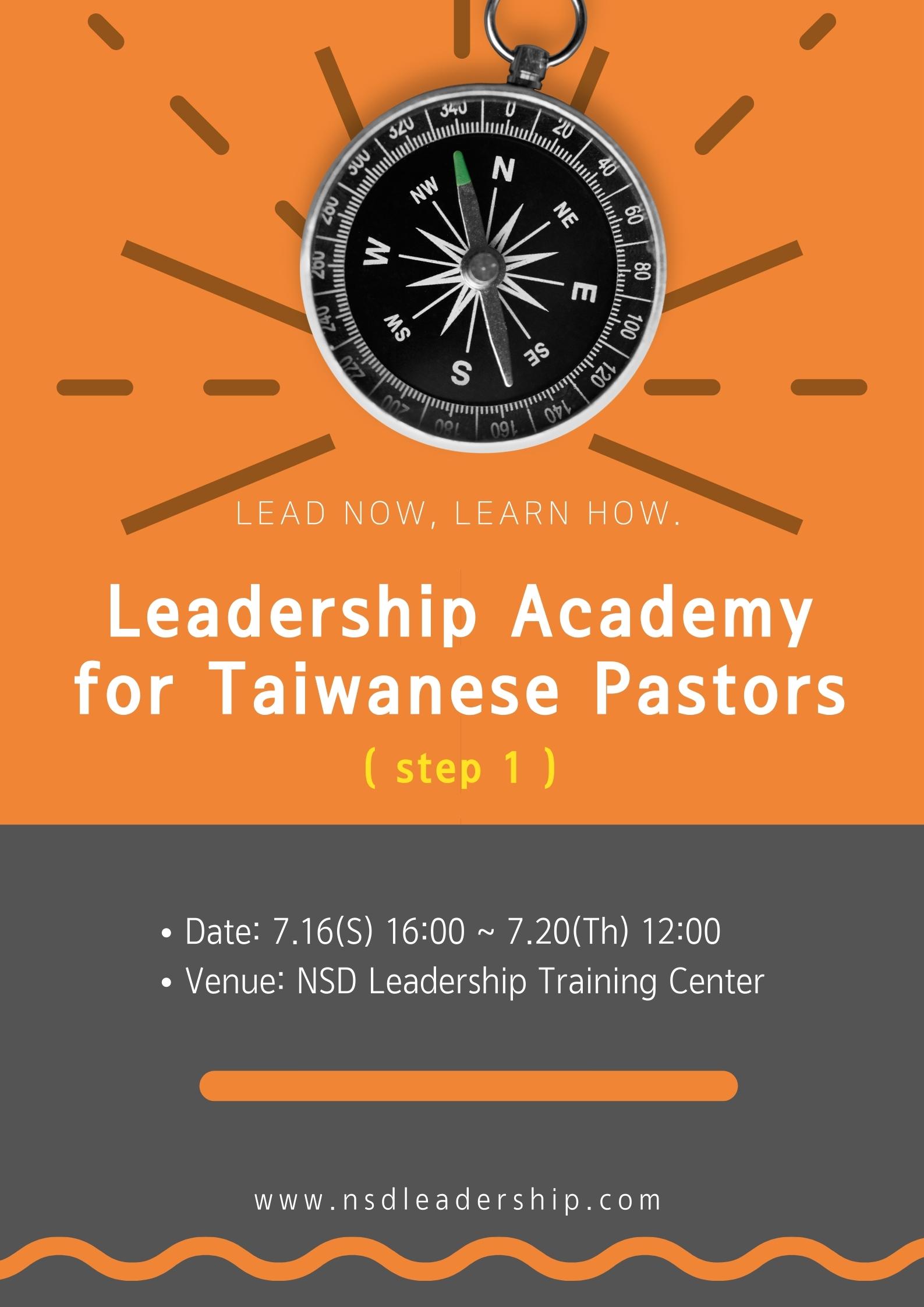 Leadership Academy for Taiwan Pastors will be held as follow;